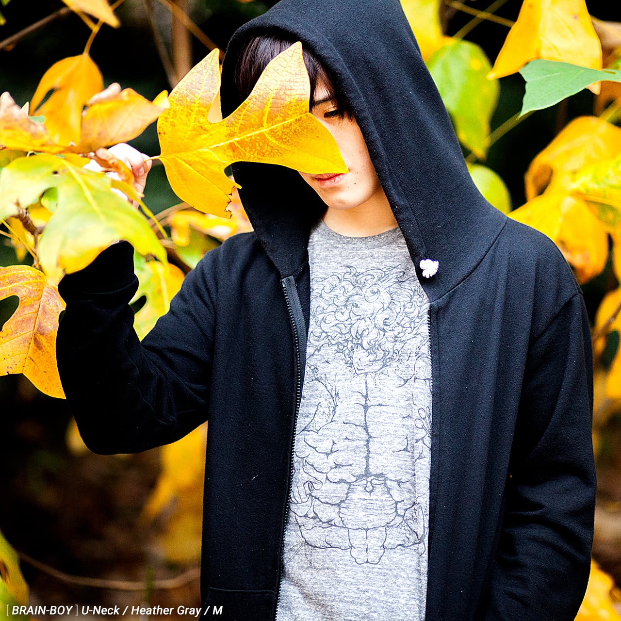 [ BRAIN-BOY ] UネックTS/Vintage GRAY【蘭わかばのハンドプリントT-Shirts】
